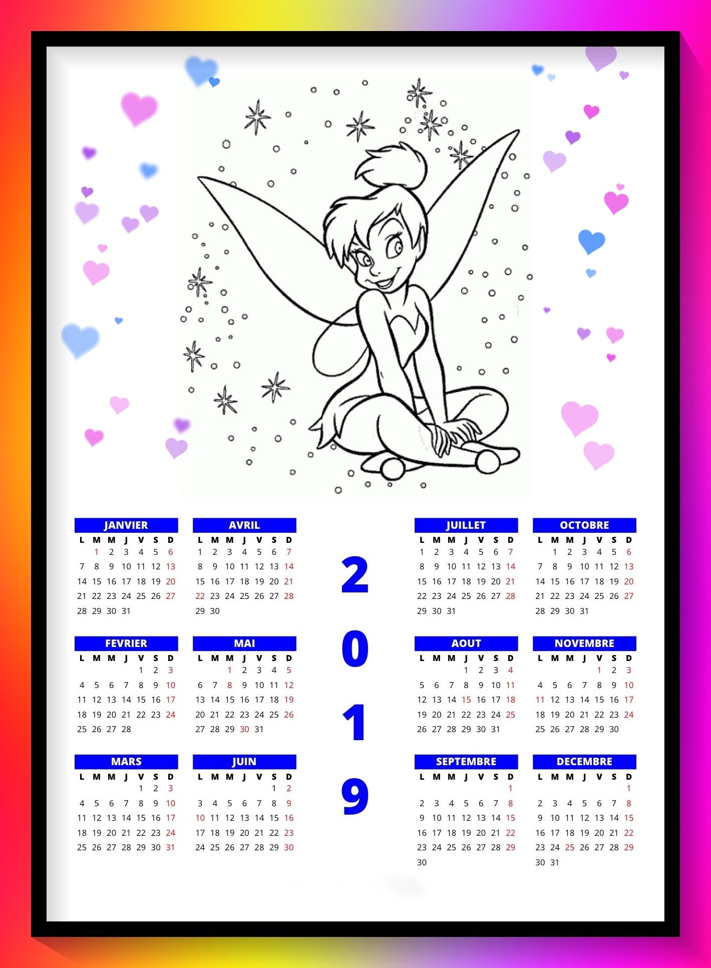 Calendrier à imprimer et colorier Fée Clochette
